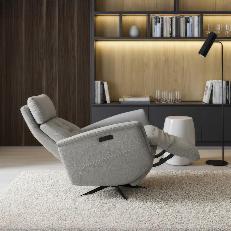 Armazón de madera de Pino maciza y contrachapado. Con suspensión de muelles en Zig Zag + muelle ensacado en el asiento y cincha en el respaldo, para una muy cómoda sentada, junto a sus cojines de espuma. El mecanismo eléctrico tiene una resistencia de hasta 130kg. 4 ruedas para poder desplazarlo sin problema.