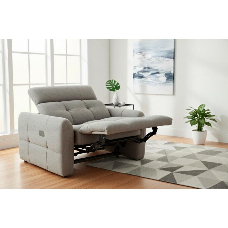 Preciosa Sillón relax eléctrico tapizada en tela gris o beige de alta resistencia al desgaste y suave al tacto, que encaja con cualquier decoración. Amplia y robusta para disponer de espacio amplio de sentada. Estructura metálica, con mecanismo extensión y compresión sistema pared cero OKIN, que permite colocar el cuerpo en postura tumbada, levantando las piernas a la altura del corazón, para un mayor descanso.