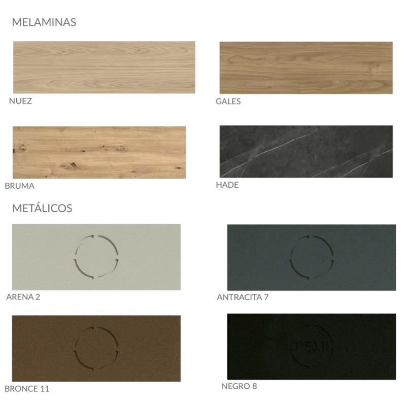 Antracita metalizado, Arena metalizado, Bronce metalizado, Negro metalizado
