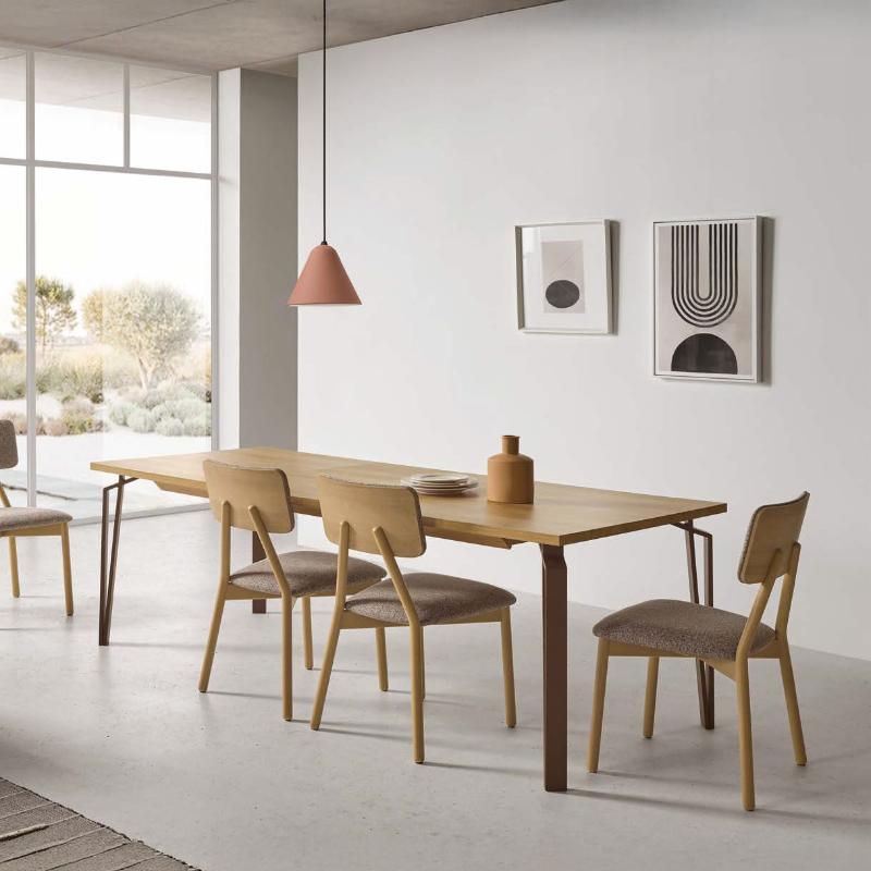 Moderna mesa de comedor fija o extensible fabricada en chapa natural de Roble o Lacada.