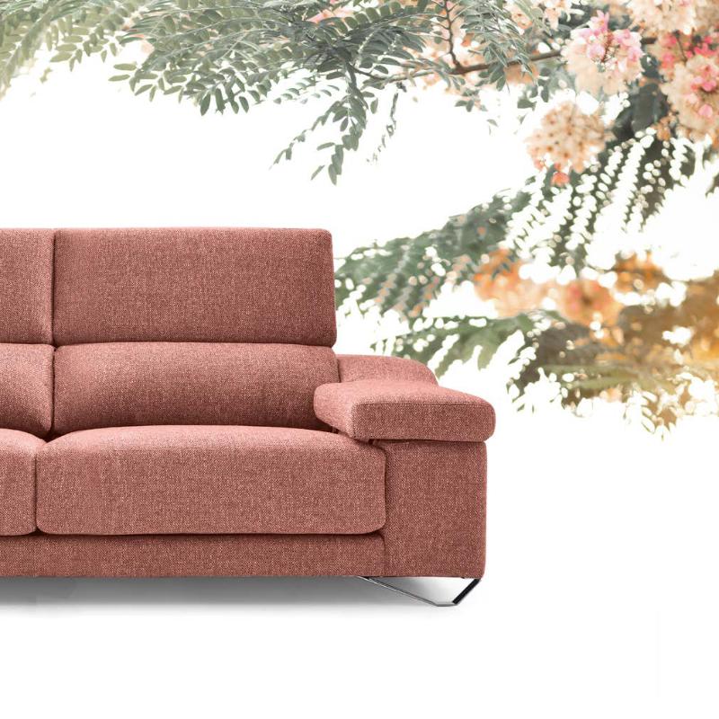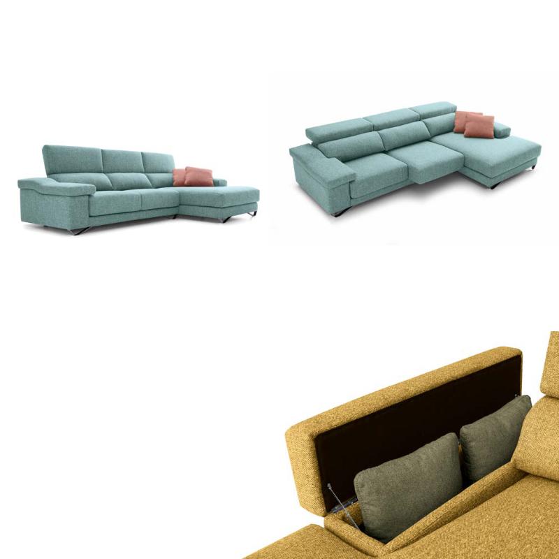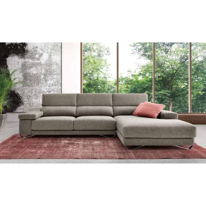 Sofá con Chaise longue en diferentes tapizados, con toques retro vintage, como sus patas metálicas modernas de diseño, que, además de poder elegirlas en varios colores, son aptas para que aspiradores tipo Roomba, circulen y limpie sin problemas, pasando por encima de las patas. Se puede complementar muy bien con otros elementos como un sillón o incluso un tres plazas.